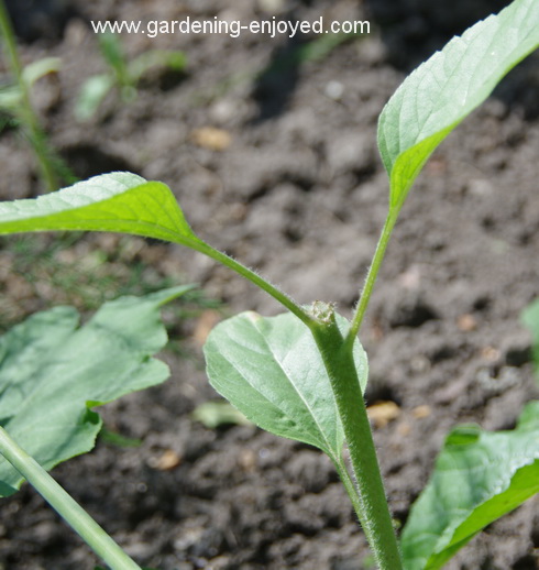 I’ve always had difficulty growing Sunflowers. Slugs love to eat the seedlings as they appear and they germinate rather sporadically outside. This year the Potatoes have played great defense. This truncated Sunflower is elsewhere in the garden and it appears that the old bunny that I say hello to most mornings has helped himself to its tasty top, probably upset that those nasty Potatoes kept him from those other delights.
