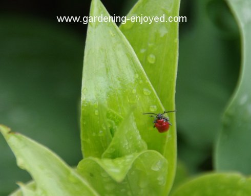 Well look who is already back trying to enjoy our garden. The very colourful but hungry Red Lily Beetle has apparently not drowned in all that soggy soil but has emerged and found some of my Lilies to start to feed on. This cute little adult will eat a few nice holes in the leaves and lay some eggs on the underside of those leaves. We work as diligently as possible to find and destroy those adults and eggs in an attempt to reduce the number of larva because they are the most voracious stage of these lily lovers. I need to prove that I love my Lilies more than they do, it’s an annual lover’s quarrel.
