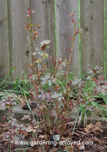 In the couple of warm days early this week we found our pruners and went looking for the Roses. We cut out all the thin spindly stems and then pruned the substantial ones down to four or five new shoots, cutting just above an outward facing one so that the bush would grow wider and bigger. Some of the taller ones, that are sort of climbers, are pruned further up depending on where the new growth is emerging. They will all, also, get a nice dose of fertilizer to keep them happy and growing.
