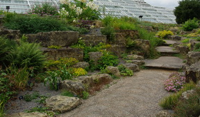 Hidden Treasures! Tucked away in a back corner of Kew Gardens was an area simply noted on the map as “rock garden.” These are the treasures that make garden touring exciting. A long and meandering path through an extensive and interesting garden with massive planted rock walls created a feeling of separation from the rest of the world. A continuous stream that cascaded through them at various points made this a refreshing delight at the end of a long day. We were able to just sit and take in the many species of plants that were being used in some very creative ways to produce a delightful display. This being Kew, of course it was also educational because almost everything was labeled. Pictures and notes were recorded in the vain belief that we might be able to replicate some of this back in our less hospitable climate. I’m already planning the remake of one corner of the garden to incorporate some of these ideas. |