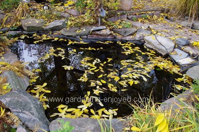 This week I finally did another chore that should have been done a while ago. The ponds produce massive amounts of vegetation each year. Delightful Lily pads and Iris and other aquatic plants. I need to remove as much of this growth as possible or it will sink to the bottom and add to the sludge that forms down there. If I allow this vegetation to add to the sludge then a complete pond clean out, a truly ugly chore, will have to take place sooner rather than later. This preparing the ponds for winter was a bit more comfortable this year. Being up to my elbows in pond water is much nicer at + 15 C than it is at 0 C. Even the fish are still coming to the surface of the water asking to be fed. They are usually settled into the lower reaches of the ponds by this time of year. When the waterfall starts to build up ice, I will shut off the pump and put the bubblers in.