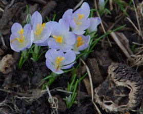 A few weeks ahead of their normal schedule the Crocus Thomasinianus are putting on a show in the bed under the Walnut tree. They are planted on a slope that faces south and this years intense March sun has noticeably advanced their bloom date. These aren’t the showiest Crocus available but they have two wonderful features. They multiply nicely and the squirrels don’t like them.