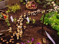 There were a couple of very interesting gardens. One garden that featured several vegetables in its design also had a trail of various types of mushrooms, that meandered through it. Not terribly practical or achievable for most gardeners but certainly an innovative use of these culinary delights.