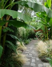 Portland is about as far North as my location near Toronto, so how come they get to have gardens where banana plants thrive and Fuchsia are hardy shrubs?? Not that I’m jealous or anything! There must be something that we can grow that they can’t. We toured a variety of gardens and each one of them provided an idea or a story that will make it’s way onto the web site or into the next few issues of Dallying. The Bananas were in a quite small residential garden in an older area of Portland and they were the focal point in a space that was full of interesting textures, cool colours and spaces. I have a thing about garden paths and the large flat stones set in gravel made a wonderful way to wander around this intriguing space. The garden down the street had some significantly larger stones creating its paths and they were a feature unto themselves. It really is amazing how expansive a quite small space can seem when the time and effort is spent on its design.