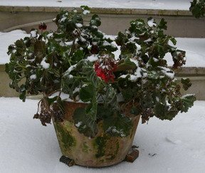 indoors before the great freeze. Now if it will just warm up once more so that I can go out to drain and rescue the hose that I was watering them with.