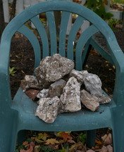 Here is a picture of a chair filled with rocks. Fascinating isn’t it?? It leads to a story about my trying an interesting to way to grow and control