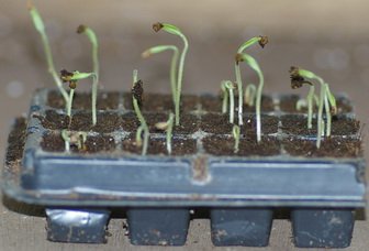 Last week I planted a few varieties of Tomato, particularly ones where the seed was from 2007. I figured they may take longer to germinate and I also put two seeds in each little plug to allow for a reduced germination percentage. Three days later, Tomato Caspian Pink is up and there are two seedlings in every space. I am always totally in awe of mother nature. Those little beige fuzzy flecks of nothing can sit in a paper bag for 18 months and then magically turn into live Tomato plants in a few days with heat and warmth. People ask me why I bother gardening????