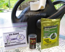 There are 35 million nematodes sitting on top of the leftover Potato Salad in the fridge. They arrived yesterday from Natural Insect Control and later today I will release them into the various areas of the garden. There are some to control the leaf miner in the Camperdown Elm, some for the vegetable garden and some to control the Iris Borer. They are a quick, easy and effective treatment for all of these problems. Each package contains a small sponge that holds 10 Million nematodes. I’ve never counted to see if the company’s count is accurate! The sponge goes into a bucket of water and we wait until the microscopic worms have left the sponge and then we dilute that stock solution into a watering can and simply water around each