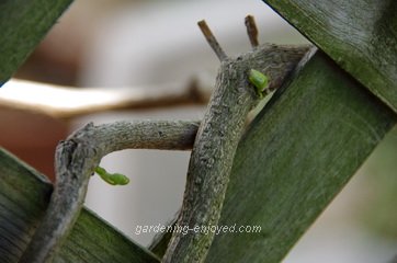 My procrastination in the garden has had some benefits. A few things that I was starting to consider as dead have finally started to show some life, having slowly recovered from the deep dormancy that our harsh winter created. Some were just deeply dormant and some have been severely reduced in size by the winter die back. The large leafed Dutchman’s Pipe vine Aristolochia durior that screened the deck from the street had been looking noticeably dead until this week. Tiny little green buds are appearing from some of the older wood and making me very happy. It has been establishing itself for several years and was a doing a very effective job. It appears that I’m left with a fair bit of pruning to remove all of the dead parts but all of the activities mentioned above will delay that job for a while, giving it ample opportunity to show me which parts are going to recover and which parts need surgery. Last year’s hardy? Fig was looking like three dead