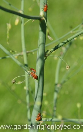 Beauty can be deceiving. These little creatures with the bright orange background and the attractive black dots seem to be quite pretty. The only real advantage to this lovely coloration is, it makes them easy to spot and attack. Asparagus Beetles come in two varieties Crioceris duodecimpunctata is the unpronounceable name for this Spotted Asparagus Beetle which will also have a taste for your Cucumbers if there’s not enough Asparagus. The Common Asparagus Beetle Crioceris asparagi is darker in colour with a red striped pattern and he is the much more voracious consumer of Asparagus. Spraying them with insecticidal soap can be effective as can hand picking. Just hold a can of soapy water underneath and knock them into it. They can fly and will do so if given the chance. Apparently approaching them from above is the most successful method. They can produce several generations in a season and they