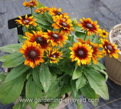A pox on the plant breeders. It’s always been a bit difficult to tell an Echinacea from a Rudbeckia, similar rough leaves and flower form. This is an Echibeckia!! They have crossed the two to provide this new category of perennials. This on is Sizzling Sunset and it made me want to go and find one. We were touring the trial gardens at the U. of Guelph and there were a few varieties of this new cross. One of our tour mates said he had grown one for a couple of years in his garden and found them to be relatively hardy in our part of the world. There were enough other wonderful new varieties in the trials that I could have done this whole issue of “Dallying” just showing them to you. If you find yourself in that part of the world the trials are open for anyone to see. Touring trials is just one of the perks of being a garden communicator and it sure beats pulling weeds.