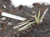 Ken answers! The snow is gone and wonderful things appear. Paul sent a photo of the trench work in his lawn and Lynn doesn’t want to dig up the brand new lawn she put in last year. There are both moles and voles that love to tunnel through our lawns and gardens particularly under the snow. Paul is correct in noting that there are no hills which are usually an indication of moles. He probably has voles. Moles mostly eat grubs and earthworms not plant parts. Voles will use the tunnels that moles make to get to the exposed roots etc. Most of us don’t really care as we rarely see these creatures; we just want them to go away. A good domestic cat living in your yard will be fairly effective. Don’t ask to borrow mine, he’s too fat and lazy to catch his own shadow. Voles are the bigger problem and the easiest natural way is the use of mouse traps. Put several in the garden for a few days baited with peanut butter or bacon but not set. After 3 -4 days when the voles are used to feeding there, set them all and the element of surprise should net you a vole harvest. After that, good sanitation, cleaning up old plant stems etc, will help to discourage their return. Full disclosure. I have never had the problem or used this remedy but it comes from the Ont. Dept. of Agriculture recommendations. Good luck and don’t ask me to come and clean out your traps. I’m too busy with the new grandchildren.