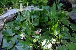 My middle pond is a dilemma. The lily growth in it is wonderful. Several large white blooms have appeared so far this year and that variety holds the blooms well above the surface of the water. It also produces an abundance of lily pads that are lifting themselves out of the water in a delightful mass of green. There is another Lily in that pond with pink blooms that sit on the water’s surface. A friend gave me several new large fish which I put in that pond because most of the fish died in that pond last winter. That is the dilemma. The Lilies are growing so well because they have escaped from their containers and are growing in the accumulated muck on the bottom. They grow much better there, where the roots are unrestricted. The fish died last winter, primarily because of the gas produced by all of that decomposing organic matter in the bottom. I need to do a complete clean out of that pond but that will put the Lilies back into containers and their wonderful growth will be constrained as well but if I don’t, the fish will probably not survive the winter again. Not to mention that cleaning out a pond is a mucky smelly unpleasant chore.