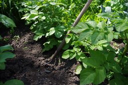 Here it is a week later and I’m trying to make good on my attempts at weekly publishing of “Dallying In The Dirt.” Had a wonderful surprise this week. I was hilling up the Potatoes a little later than I should have. The plants were getting very large. I unearthed a nice sized Purple Viking. Actually I cut it in half with the hoe. I wasn’t being that careful because I didn’t anticipate any tubers being developed in late June. When I finished the hilling I got out my trusty little blunt ended hand fork and went exploring. I quickly discovered two more beautiful purple skinned delights. The first Potatoes of the season, somewhat early, have a wonderful flavour. Nothing fancy, just boiled until tender and with a bit of butter.