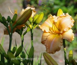 Bill Davis was a dear old friend of ours and he reappears in our garden with great fanfare. He had a wonderful deep apricot Daylily named for him and William E Davis is always the first Daylily to open in our garden. He showed up yesterday right at the foot of our front stairs to herald the beginning of that season. There are at least 30 different Daylilies scattered throughout the many beds and they should keep us surrounded by blooms of every colour until nearly the end of August. When is somebody going to add blue to their palette? I must confess to liking my Iris better but Daylilies have much to recommend them. They bloom for a long period of the summer, they don’t have to be dug and divided very often and they have virtually no insect or disease problems. They are a lazy gardeners best perennial friend. Time to answer a few questions. If you have a gardening question just ‘reply’ to this newsletter and send me your query. I try to answer most of the questions and the ones that I answer here are those that I think will have the widest interest. You can also find the latest garden updates on the front page of gardening-enjoyed.com. I try to change it every few days so check back often. Yasmeen Asks ? Thanks so much for the informative news letters. I look orward to reading them. Since you mentioned success with cymbidium, let me tell you of my failure - twice. I had one plant and was advised to pot it in a large container, to let it get some frost and then bring indoors. The first time the frost made it mushy and I lost it, this year it was struggling indoors and then just bit the dust. What did I do wrong? Ken Answers! It's a bit of a delicate balance between letting it have a cool period and having it outside when there is enough frost to damage it. Mine usually make it outside until the end of October and then find their way indoors where they live in a room with lots of daylight to help them into bloom. Loretta Asks? My question is about hibiscus. I have one as a tree in a pot. Lovely yellow blooms but also many yellow leaves. Is there something I should be doing besides watering? Ken Answers! Hibiscus, like all trees, doesn't keep their leaves forever. If you are losing a few of the oldest leaves then that is natural. If you are losing many, then maybe it needs some fertilizer as well as the water. Mine is outside, for the summer, and gets fertilizer in its water about every two weeks. They do like a lot of light, mine is in full sun for several hours each day. Ellen Asks? Is there any way to eradicate Trumpet Vine, other than maybe burying it in a foot of concrete? :) I've tried the pickling salt/pickling vinegar/dish soap spray, mulching over it with a layer of wet cardboard and cedar mulch and it's even come up through 12" high raised vegetable beds! Help?! Ken Answers! The people buying it at the nurseries this weekend will ask if it is hardy enough to survive :-) You can do a massive dig trying to get all of the root out of the ground but don't leave some small bits. Continuing to cut down any shoots that you see will eventually kill it as it must have some sunlight to continue growing. It has lovely orange flowers, you could try to reconcile your relationship and learn to love it again. 111 Trent St. W. Whitby ON L1N1L9 |