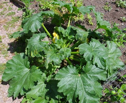Here is another pleasant surprise in the vegetable garden. This huge Zucchini plant has already provided us with two additions to the dinner menu. It self seeded from a Zucchini that was growing near that spot last year. I would never have direct sown Zucchini seed and certainly not as early as this one must have germinated. A relatively mild winter and some very warm early spring weather combined to give us this treat. Should I take Mother Nature’s example and plant some Zucchini seed in the late fall this year? I might try but somehow I think I know what the result will be. The plants that I started indoors are at least another two weeks away from producing edible fruit. I was very interested to see what the fruit would be like as many members of the squash family will happily cross pollinate and provide us with some rather strange progeny. This one seemed to be a healthy and tasty Zucchini that