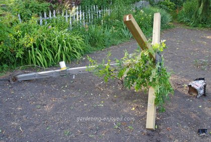 make sure I wasn’t going to hit any significant Wisteria roots at that location, and now will stand up the new post and hope that the structure will be sturdy enough. The Wisteria vine has been carefully untangled from the old structure and is laying on the ground waiting to be wound around its new home. There always seems to be another unscheduled chore to keep my life interesting. This one took a few hours and a few dollars but the result will, hopefully, be an improvement and the Wisteria will not be the worse for wear.Now it’s time to answer a few of my reader’s questions. Don’t forget to check the front page of the Website for frequent short ideas for current gardening activities. Last week I tried to give you a link to story about a new Downy Mildew that was attacking Basil. Apparently the link did not appear. Here it is.