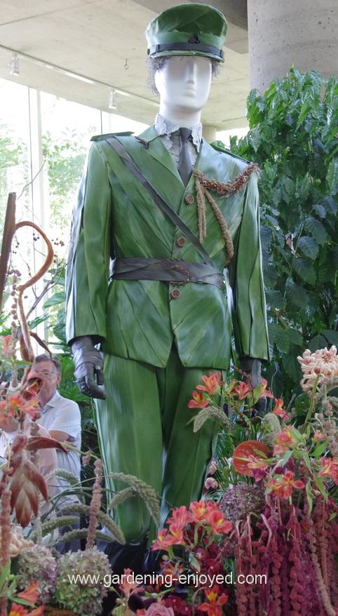 The first character to greet us was “Lady Mary” and we just stopped and stared. The sign beside each character named them and the florist who had created them. The outline of the materials used was never complete and left us all discussing and guessing just what was what.