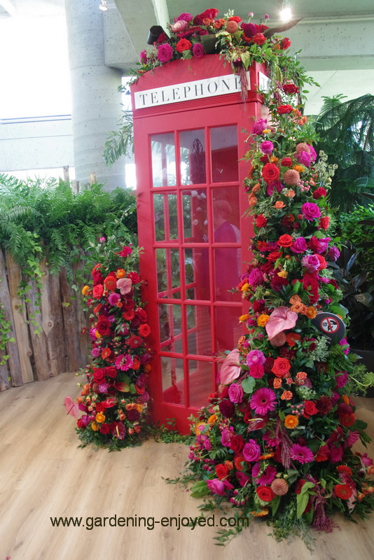 So on to my photos. The start of the exhibit was an iconic British red phone both and the surrounding floral arrangements were a powerful indication of what we were about to see. Now I have to start choosing as there won’t be room for all of them.