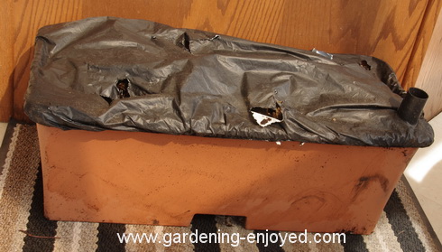 This is one of my Earthbox subirrigation containers that are used to grow a significant portion of my vegetables. I want to have my own vegetables as early as possible this year just in case this nasty Covoid19 thing continues to affect the supply of fresh vegetables in our grocery stores. Each year I dump out all of the soil, loosen it up and sort out any large roots etc. from the previous year's crop and then replant them. I can't do that until the soil in them has thawed so, to speed up the process I am bringing them into the solarium, one at a time, to thaw out so that I can have them refreshed and ready to go as soon as the weather allows me to plant out the cool season crops. I could try planting them in the solarium and starting them in that light and heat. I suspect that somewhere around the third one, the Assistant Gardener might wonder about the amount of the kitchen floor space that was