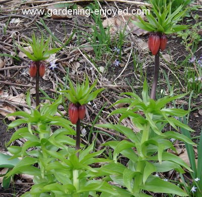 These Fritillaria are putting out a good quantity of blooms this year. A strange but lovely, early flowering bulb. I keep a close eye on them as they are the only thing that the red Lily Beetles will eat while they ar waiting for the Lilies to emerge. Their bulb also has a rather obvious odour and it can help to plant a few of them among other bulbs to distract the squirrels when they are searching for edibles. They do multiply and this group of three is the result of planting a single bulb a few years ago. They are quite large bulbs and tend to be a bit expensive but we only need a few in any garden,