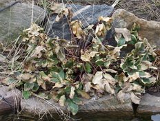 At the wonderful Canada Blooms show, there were a few plants that were very much in evidence. Hellebores, sometimes called Christmas Roses, were everywhere. They are rather “in” these days and a lot of new varieties are showing up in the marketplace. That and the fact that are easy to get into bloom for mid March made them popular at the show. They bloom naturally outside about now, in our part of the world. They tend to be evergreen and put out their blooms near the end of the winter. I have had one for a few years and have moved it twice in an attempt to get it well situated. I will be moving it again as its very burnt and crispy leaves, indicate that it is receiving far too much sun during the winter months. There are, nevertheless, a host of flower buds opening up just under those burnt leaves. Maybe it knows that it really isn’t my favourite plant despite its general popularity these days. I’m just not that impressed by its rather drab flowers even though they are one of the few things blooming. The large clump of bright Crocus blooming beside it are, at least to me, far more worthy of the space.