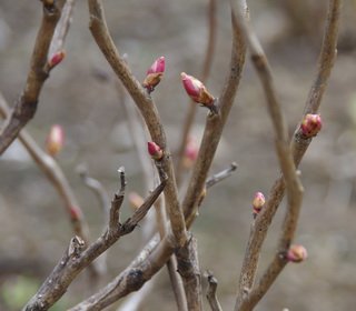 Yesterday it almost felt like spring for the first time and after I pruned the Crab Apple I just wandered around the garden to see what had happened over the winter and to search for signs of spring. All of those lovely bulbs were pushing through and in the very front I found something quite exciting. The Tree Peony had large swollen buds bursting forth everywhere. There appeared to be very little winter kill on it. Those buds are the promise of some spectacular blooms in a few weeks. Many of the Roses were showing signs of life. The Explorer Rose that I have trained into a small tree shape has emerging buds, indicating yet another year of survival for this very hardy, Canadian bred, Rose. The Fritillaria were several centimetres out of the ground and, as yet, the Red Lily Bugs have not woken up and discovered them. They will, I’m sure and my needle nosed pliers will get oiled up for another season of bug crushing.