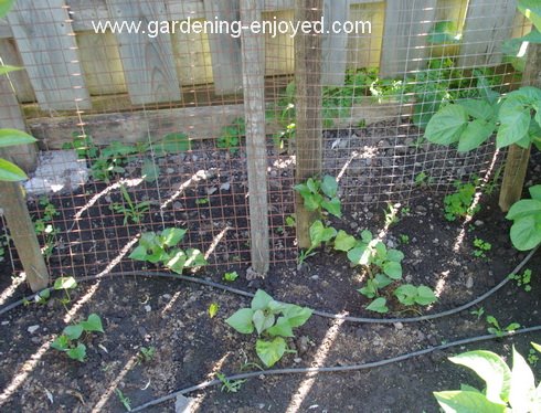 I used to have an orange fruited Lilac, which many of you may have seen in my Vertical Vegetables presentation. I had for many years guided my winter Squash vines up into the old Lilac bush in the corner of the vegetable garden. That Lilac’s time had expired and it made some trips to the fireplace and the compost. We still needed to grow those squash in that limited space so this 2" x 4" welded wire fence was suspended from the backyard fence and the Squash were advised of the desired direction to grow and they have quickly responded. Now hopefully the new structure will be sturdy enough to hold, if we get a bumper crop of Squash. The white around the base of the Squash is the shredded paper from the office. We pack it around the base of the stem in an attempt to stop the squash vine borer from laying her eggs into the base of those stems. Seems to work reasonably well and by next spring the paper mulch is just part of the soil.