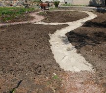 I worked on continuing the paths that wander through the garden. I started these last summer and didn’t want to dig up the potatoes to finish the job. It’s all part of making the back yard a Wonderful Wander and dividing the former large vegetable garden into smaller more accessible areas. I will continue to integrate the flowers and vegetables to make the whole Wonderful Wander more interesting.