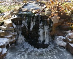 The ponds have frozen completely in our very early arrival of winter and have now thawed out again. I need to get the pump turned off and the air bubblers in and working. Most of the rest of the pond overwintering preparation I had already managed to do but I like to see the waterfall running as long as possible. It’s really quite pretty as the ice makes some delightful formations down the waterfall. I need to replace a few of the pond light bulbs because the icy waterfall is even better when lit up. The trick is to know just when winter is here to stay so that I can shut the system down and have it drain.