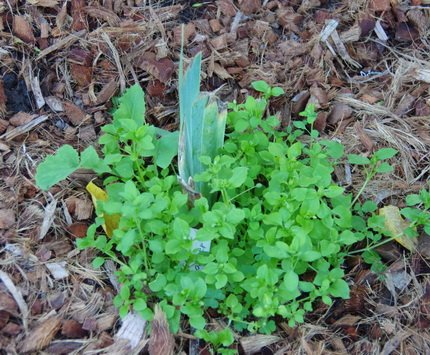 Staying with the weed theme, here is another batch of weeds that I actually planted this year. That was not my intention but rather the result of some of my poorer horticultural practices. The picture shows one of my new Iris plants surrounded by a lush growth of fresh weeds. How did that happen? I always try to amend the soil with some of my compost when I plant new perennials. If I was more efficient at maintaining the gardens then I would not find myself pulling out weeds that are large enough to have mature seeds and then throwing them in the compost pile. A really great compost pile would get hot enough to kill weed seeds but I don’t think that actually happens in anyone’s backyard compost. It’s better to never let weeds go to seed but that would be in an ideal world, not in mine. The Iris enjoy the enriched soil enough to make the extra weeding