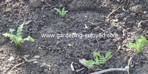 Here’s another of my weed rants! These emerging thistles are popping up in that bare soil. That soil is bare because I thoroughly weeded it about two weeks ago. I tried to get as much of their roots as possible but it is painfully obvious that I was not that successful. The trick now is to knock them down again before they are able to regenerate more roots. Theoretically if I do that often enough the roots will run out of energy and the plant may actually die. The problem is timing. It’s not a job that must be done today but every day that I leave it a little more photosynthesis takes place and those roots get regenerated. This evening when the temperature moderates a touch I must grab my hoe and attack.