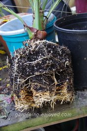 I usually recommend that houseplants get repotted in the early spring just as their growing cycle begins again. Some part time houseplants need to be repotted when they are returning to the house for the winter. They grow very well outside during the summer and have far outgrown their pots when it’s time to bring them in. One of the rapid growers that I like to have, is the date palm Phoenix dactylifera. This plant is an interesting and inexpensive delight. I buy a package of dates at the grocery store, eat the dates and plant the pits. When they are small, they are lovely little palms but they grow a massive root system that is designed to search in the desert sands for any available water. As a result they quickly fill up a pot with roots and need to move up a pot size or two each year. I did manage to keep the first one, that my daughter planted, as grade school project, for about 30 years. The Assistant Gardener had suggested for several years, that it had minimal horticultural or aesthetic appeal and I finally agreed with her and left it outside one winter. The new one in the picture is about four years old. Great kids science / horticulture project. Time to answer a few questions. If you have a gardening question just ‘reply’ to this newsletter and send me your query. I try to answer most of the questions and the ones that I answer here are those that I think will have the widest interest. You can also find the latest garden updates on the front page of gardening-enjoyed.com. I try to change it every few days so check back often. |