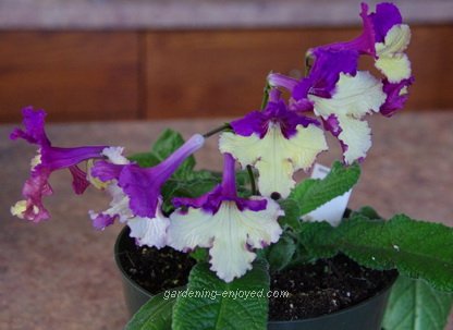 I was in the local garden centre, Vandermeers, this week looking for a decorative house plant for the lobby of the church when I happened open a display of interesting Streptocarpus. They are great flowering house plants. Bloom regularly, easily propagated from leaf cuttings and quite reliable but having fairly dull blue or white flowers. You can see in the picture the very interesting broken colour patterns in these extra large blooms. They all appear to be purple and white but many of the white areas are actually bright yellow. My camera just didn’t want to capture that colour. They were so interesting that I actually took out my wallet and bought one to bring home. I really don’t need, or have space for, another flowering house plant but there it is on the kitchen island, showing off its unusual colour patterns. The Assistant Gardener’s comments cannot be recorded here. This is a crazy week as we prepare for our Garden Writer’s meeting. It’s held at Canada Blooms and brings together about 60 of my garden writer friends. You don’t care but you should care about going to downtown Toronto to see the great Canada Blooms garden show. Great ideas, lots of bright blooming flowers, interesting plants and landscape ideas and a market place with some great plants and a few gimmicks that I’m sure you can sort out. I’m speaking there Monday at noon if you want to come and listen. Now it’s time to answer a few of my reader’s questions. Don’t forget to check the front page of the Website for frequent short ideas for current gardening activities. Glen Asks? I was interested in your comments about the algae in your pond. I have the same situation in mine. It is hard to remove because of the gooey consistency. I am not sure if the normal treatment during the summer months will work in the cold water. |