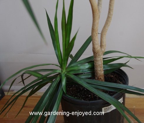 In my previous “Dallying” last December I showed you a big branch that I had cut off of a Dracaena marginata because it was tipping over. I stuck most of that branch into a big jar of water and put it the bright light of the solarium. It grew roots and didn’t drop more than one or two leaves. This past week or so I took it upstairs and planted it into the big pot with the rest of that plant and again it appears to be happily starting to grow there without dropping many leaves as it transitions from growing in water to growing in soil. Plants often make quite different types of roots in water from those they produce in soil. I could see the leaves starting to droop after a day or two, so I watered that portion of the soil and they came right back up again. Mother Nature is always amazing me.