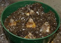 Being outside so much has left one other autumn activity neglected. The box of Jetfire miniature Daffodils is still sitting in the basement waiting to be potted up. Having bright blooming Daffodils on the counter in late February is another of those easy to do treats that make winter gardening so worthwhile. They need eight weeks in the cold cellar to bloom so the later I plant them the later they can appear in the winter kitchen. In a perfect world they are just starting to appear as the last of the Christmas planted Amaryllis are finishing. We give Amaryllis bulbs as Christmas presents to a variety of people and then we plant the extras to dazzle us with their huge blooms in the middle of winter. Grandchildren get a bulb, a pot, a bag of soil and time with us learning how to plant them. They then report regularly on the amazing growth and another generation of potential gardeners has experienced the thrill of watching their efforts produce amazing rewards.