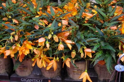 of Begonia boliviensis for a few years now. It’s been a bit difficult to propagate and difficult to make it branch out into a bushy full plant when it’s young. It’s amazing when it matures and provides a spectacular show of colour all summer in sun or shade. It has previously been available in few shades of red. Loblaws was showing new deep velvet red and vibrant orange varieties, both of which were freely branching and looking good even in their 10 cm (4") pots. Rush to these stores and snap up these dreams before everyone realizes what they are and they disappear from the shelves. My samples will get a place of prominence in the garden and I will continue to report to you on how they perform.