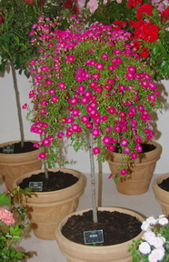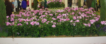 Roses There are trees and bushes and covered pergolas and baskets of blooms; all of which only exist in a Canadian Rose growers fantasies. A whole marquee is devoted to Roses. A 10' square filled with bloom covered bushes of a rich lilac coloured rose captivates us the moment we are near it. Lucky is the ‘rose of the year’ for 2009 and the nurseries that have it want to make sure it is in your garden.