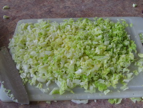 Chop the cabbage into pieces about 0.5 cm (1/4") This is an approximation please don’t take the time to measure.