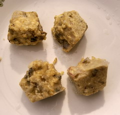 Eggplant Patties These are very tasty and will often appeal to those who profess a dislike for Eggplant. Just don’t tell them in advance what they are getting. These can also be adjusted by the amount of red pepper that you include.