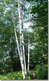 The delicate foliage and clean white bark of the Paper Birch Betula papyrifera make this tree a very popular landscape specimen. It is relatively short lived but that’s in tree years and the fact that it probably won’t make it past 100 doesn’t really concern most of us when we are choosing a small tree for our gardens. It does have some horticultural requirements that we can easily satisfy that will make it perform better. It competes very poorly with grass roots and is best grown with an area of relatively bare soil around it. It does like to eat and drink so yearly applications of fertilizer or, even better, some rich compost will keep it healthy. A little irrigation during dry periods is also quite beneficial.